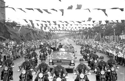 My parents had asked on several occasions for a map of the city and found that there were no maps available to tourists. In fact, our asking was treated with suspicion, as if we must be planning some kind of covert operation. Which I guess we were. Several times Dad got out of the car to seek help from pedestrians. Each of them looked shocked at being approached, darting furtive looks left and right as they scurried silently on. One or two paused long enough to give short, mumbled responses that meant nothing to us, before rushing away.
