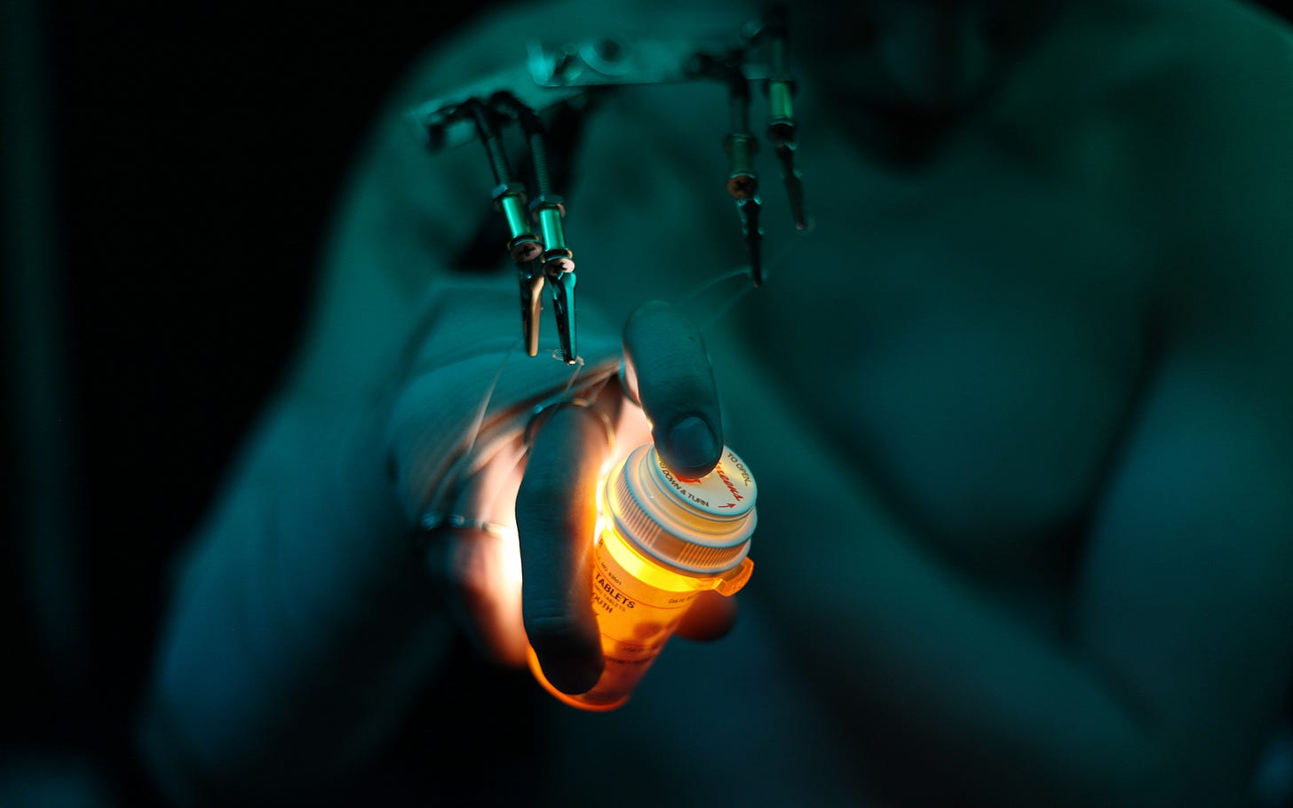 In the monotone voice of someone reciting a memorized script, she gives him the answer he wants to hear: “Amurzyn is a nonaddictive, effective pain-relieving opioid. FDA approved and ready for market.”